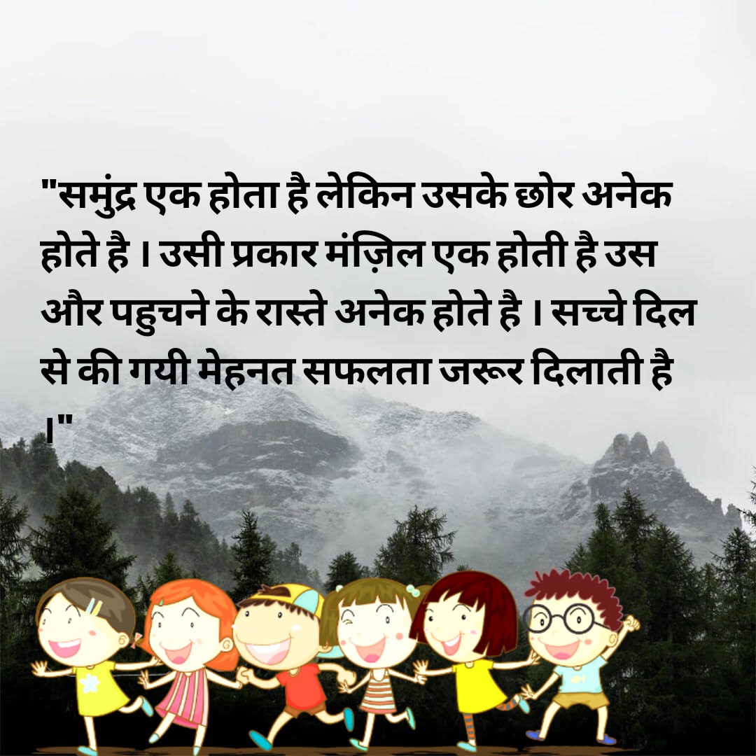 “समुंद्र एक होता है लेकिन उसके छोर अनेक होते है । उसी प्रकार मंज़िल✨ एक होती है उस और पहुचने के रास्ते अनेक होते है । सच्चे दिल से की गयी मेहनत सफलता जरूर दिलाती है ।”