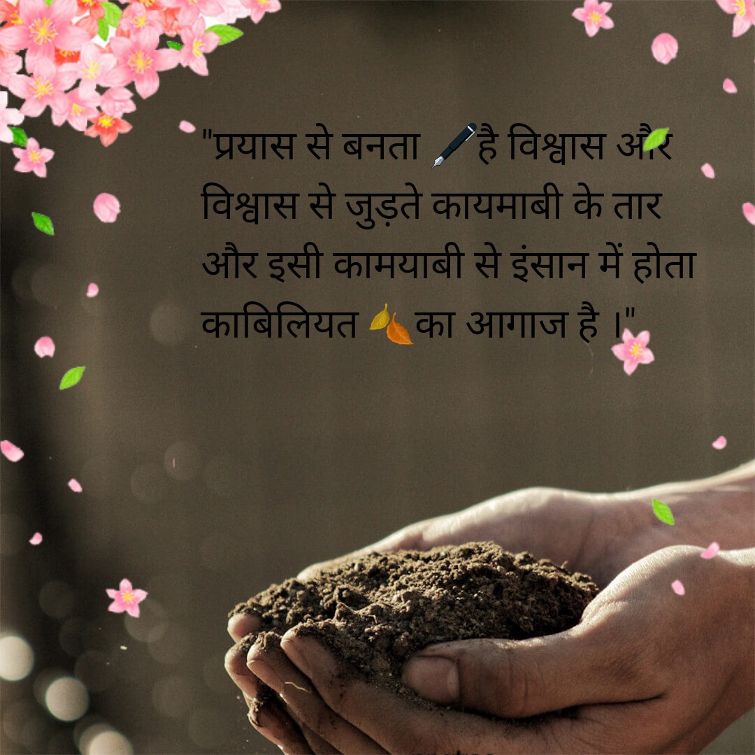 “प्रयास से बनता है विश्वास और विश्वास से जुड़ते कायमाबी के तार और इसी कामयाबी से इंसान में होता काबिलियत 🍂का आगाज है ।”